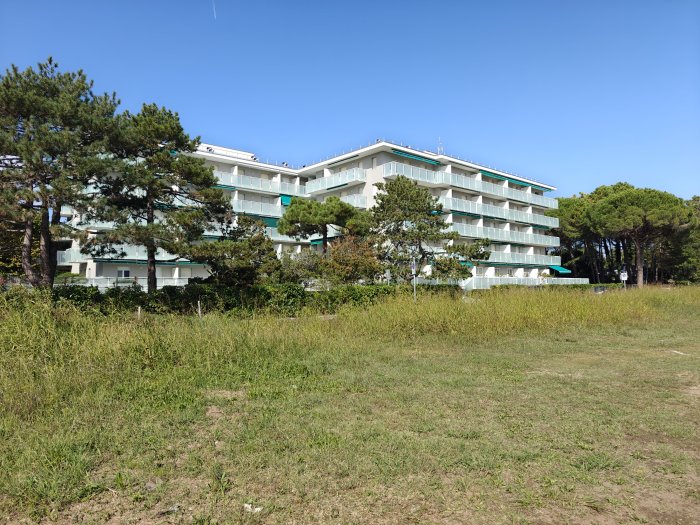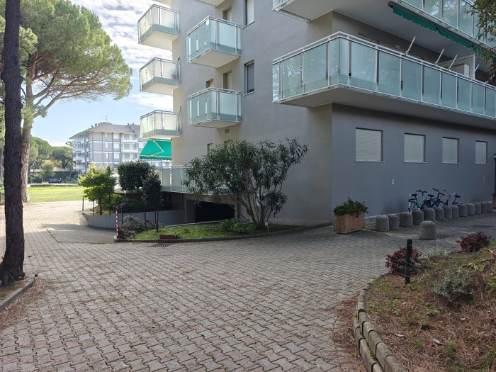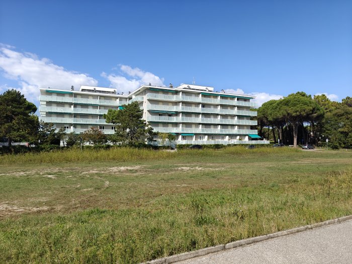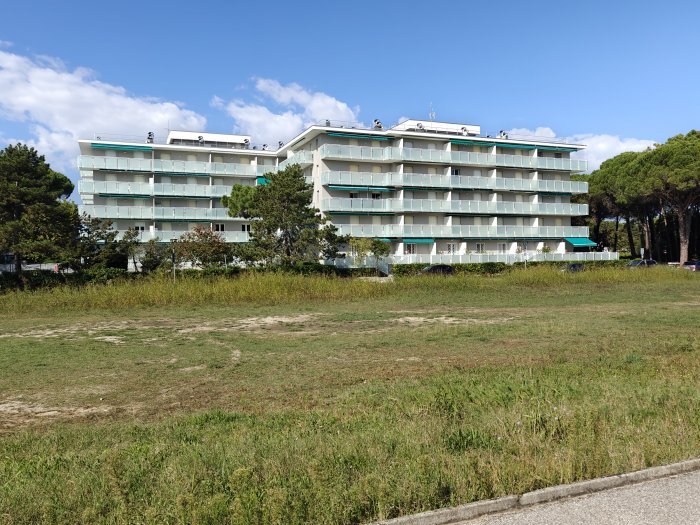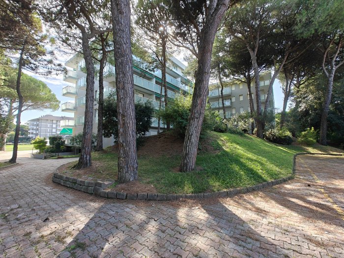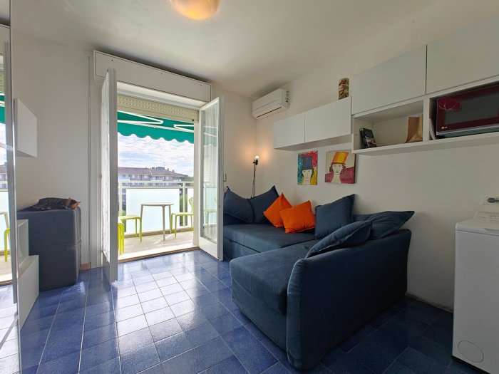 Lignano Riviera, calle Shakespeare n. 12. A breve distanza dalla spiaggia, in elegante residence con piscina, luminoso e accogliente appartamento monolocale (ca. 30 mq) con terrazza (5 mq), completamente arredato, sito al 3° piano (con ascensore). Ingresso, vano giorno-notte con divano letto matrimoniale, cucinotto, terrazza abitabile con affaccio sulla piscina condominiale, bagno cieco recentemente ristrutturato (provvisto di box doccia e aspiratore). L'appartamento dispone di attacco lavatrice, piano cottura a induzione e impianto di climatizzazione con pompa di calore. Vista libera sulla piscina e sul corso delle Nazioni. Il condominio è stato recentemente oggetto di un intervento di ristrutturazione che ha comportato il rifacimento delle terrazze, dei parapetti e di tutte le facciate. Appartamento in ottime condizioni generali, in zona tranquilla e al contempo servita. Interessante opportunità!