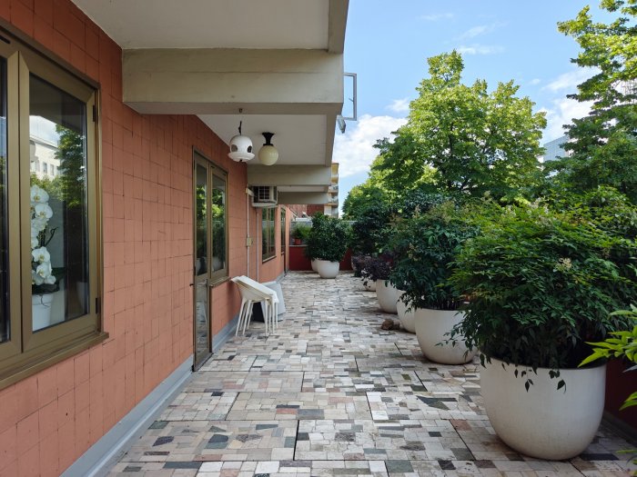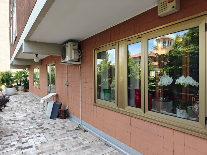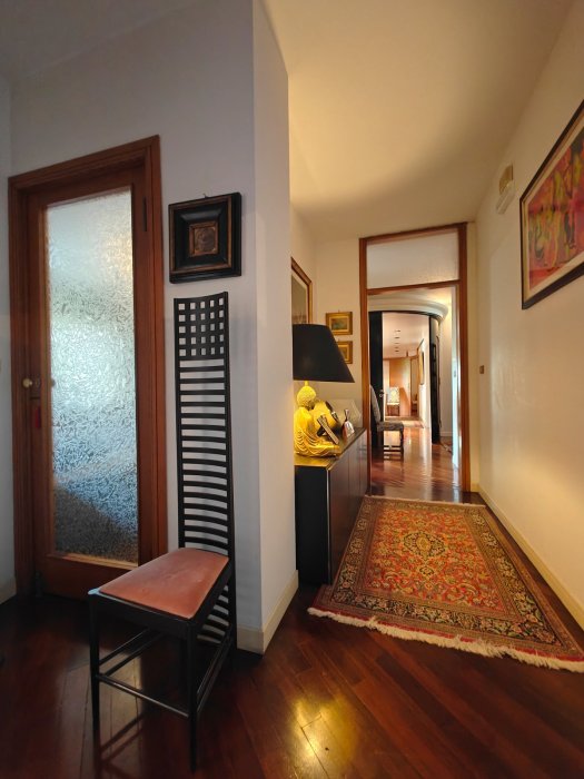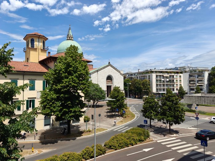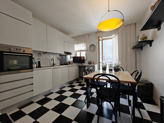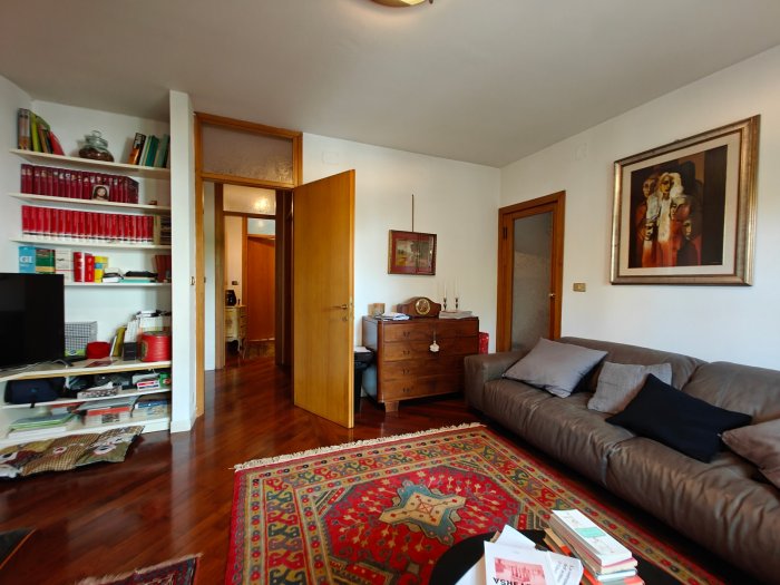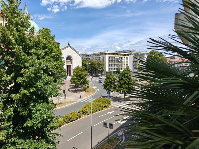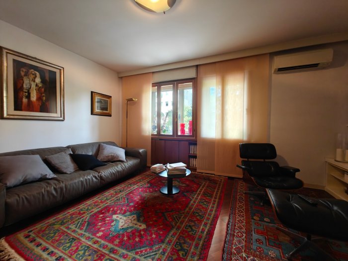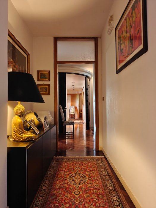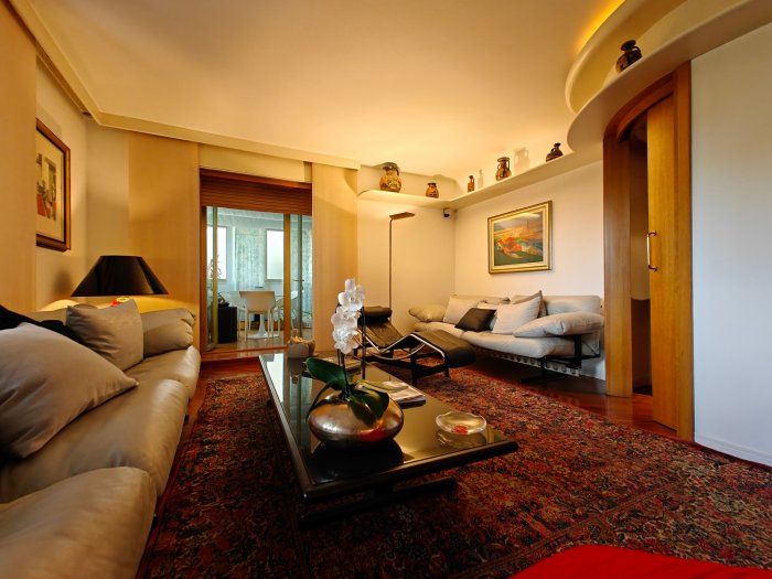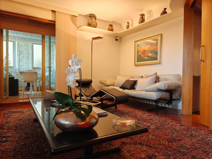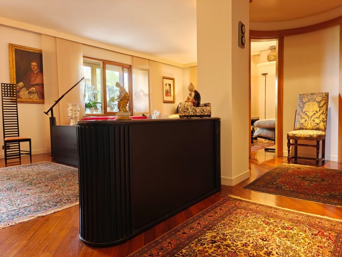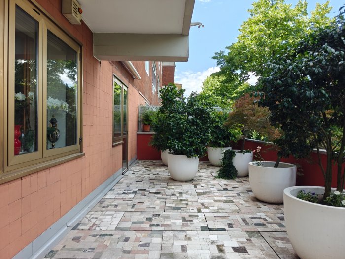 Adiacenze piazzale XXVI Luglio. A breve distanza dal centro storico, al secondo piano di signorile stabile progettato negli anni '60 da noto architetto, elegante appartamento quadricamere (250 mq) con irripetibile ampia terrazza abitabile di ca. 120 mq. L'abitazione è frutto di un'attenta e scrupolosa ristrutturazione eseguita negli anni '90, sulla base di un progetto che ha coniugato materiali di pregio, dettagli sartoriali e razionalità organizzativa. Lo spazio risulta così organizzato: ingresso con atrio di generose dimensioni e apertura dell'ascensore diretta nell'abitazione, ampio soggiorno-pranzo con accesso alla terrazza e alla veranda valorizzata come sala da pranzo aggiuntiva e giardino d'inverno, cucina abitabile con una seconda veranda adibita a locale di servizio, disimpegno notte, suite matrimoniale con bagno privato, 2 camere doppie, bagno finestrato con box doccia, ripostiglio, ulteriore veranda ad uso lavanderia-stireria, suite ospiti con camera matrimoniale bagno privato. La generosa terrazza, con l'adiacente veranda, si configura come un sorprendente giardino pensile e rappresenta una rara isola di quiete domestica, dedicata al relax e alla convivialità, "protetta" dalla rassicurante mole della cupola del vicino Tempio Ossario. Completano l'abitazione una spaziosa cantina di ca. 20 mq, sita al piano interrato e 2 comodi posti auto coperti, offerti in locazione ad un canone mensile di Euro 60,00 cadauno, siti all'interno dello stesso complesso edilizio. Riscaldamento centralizzato con valvole termostatiche e contabilizzatori di calorie. Interessante opportunità.