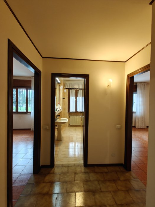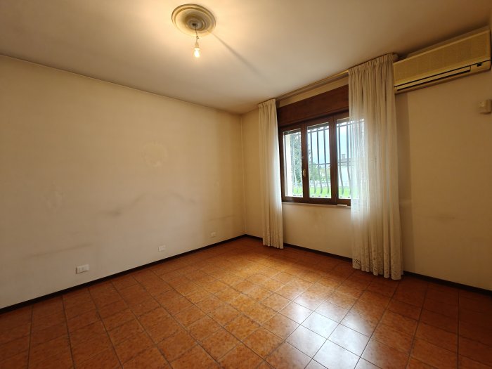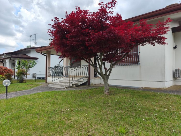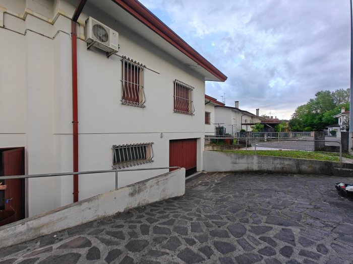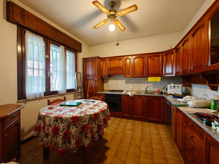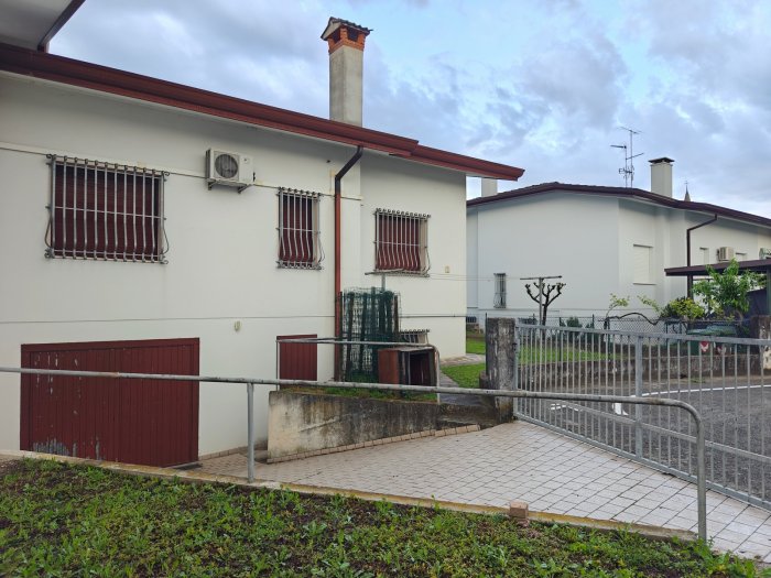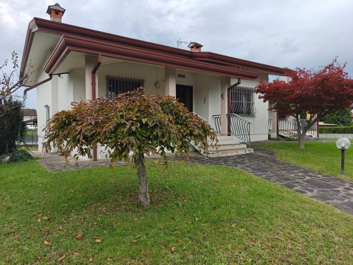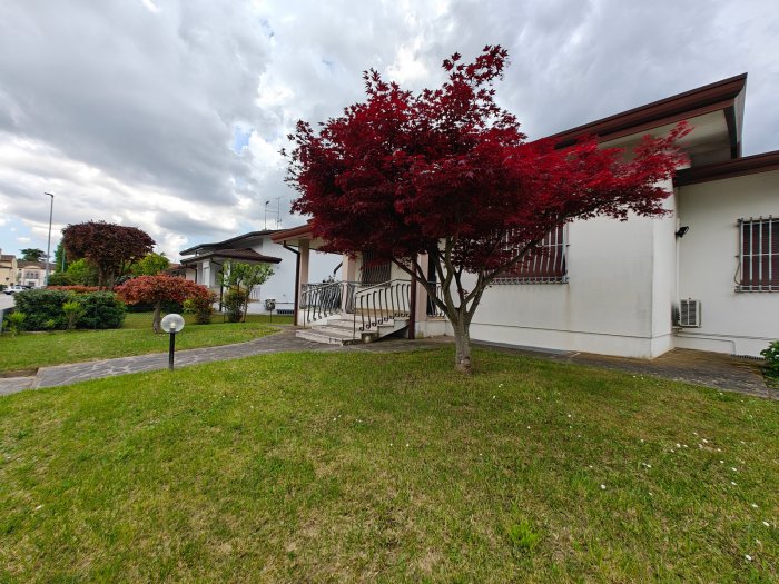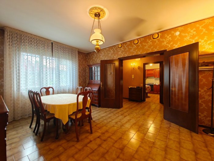 Via Panigai 23. In contesto residenziale, interessante villetta in bifamiliare, realizzata negli anni '80, con gradevole giardino privato di ca. 250 mq interamente recintato. L'abitazione di ca. 108 mq si sviluppa su piano unico con locali di servizio al piano interrato (108 mq) internamente collegati da una comoda scala. Al piano terra ingresso, atrio, cucina separata abitabile, soggiorno-pranzo, disimpegno notte, camera matrimoniale, camera doppia, bagno finestrato con vasca; al piano 2° (accessibile mediante botola con scala retrattile) sottotetto-vano tecnico ad uso deposito; al piano interrato disimpegno, bagno-lavanderia, cantina, ripostiglio, centrale termica e garage doppio. Buone condizioni generali, abitabile da subito. Unità immobiliare termoautonoma, con caldaia alimentata a gas metano. Posizione centrale e servita. Interessante opportunità.