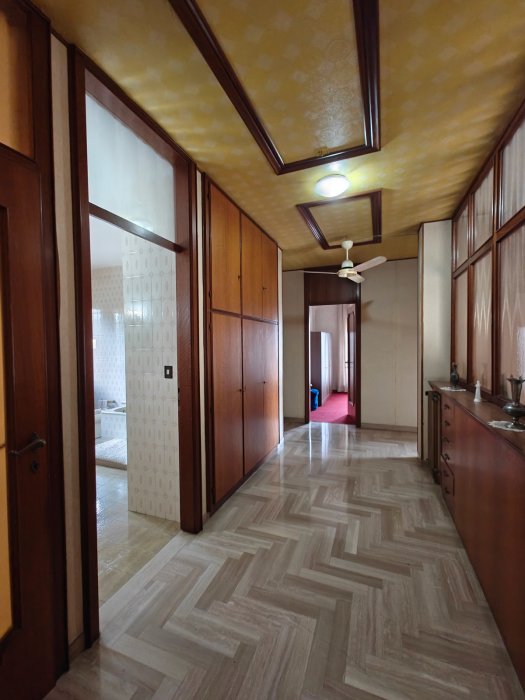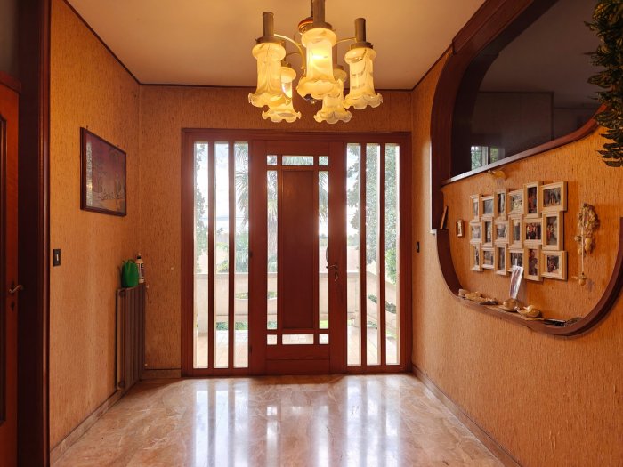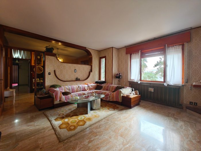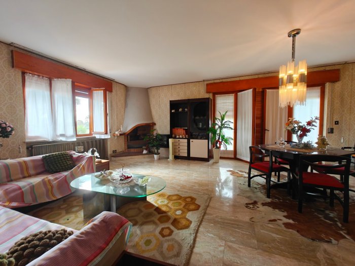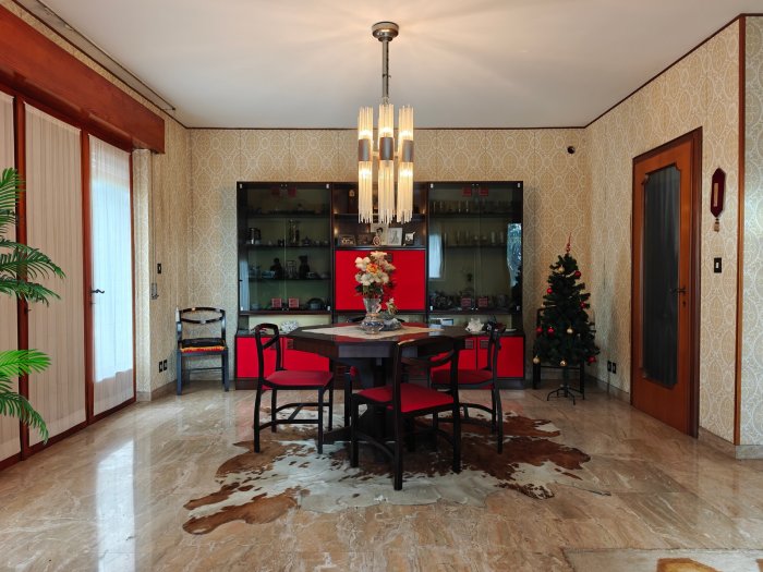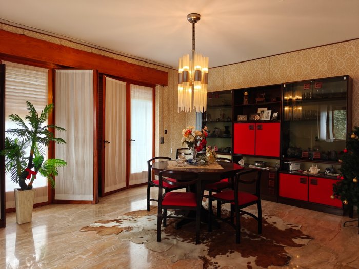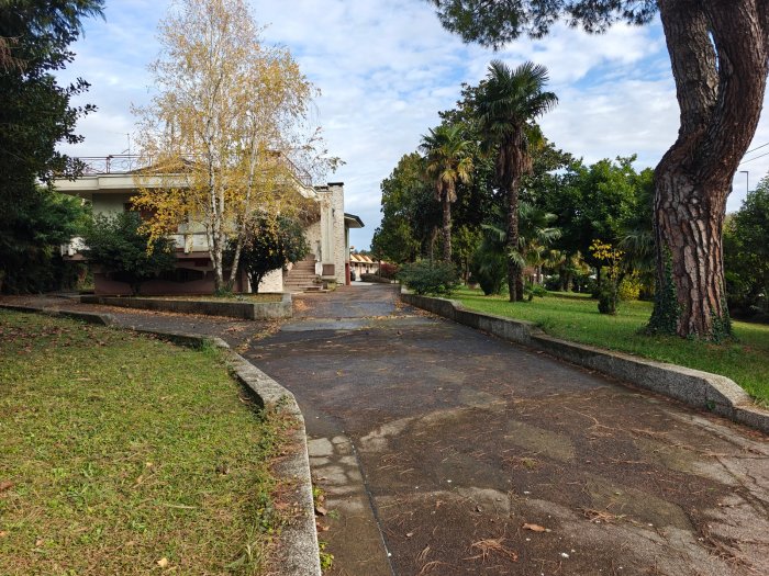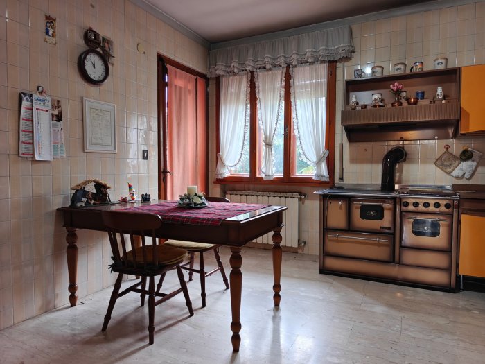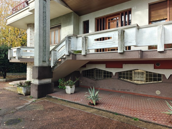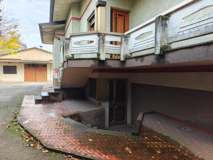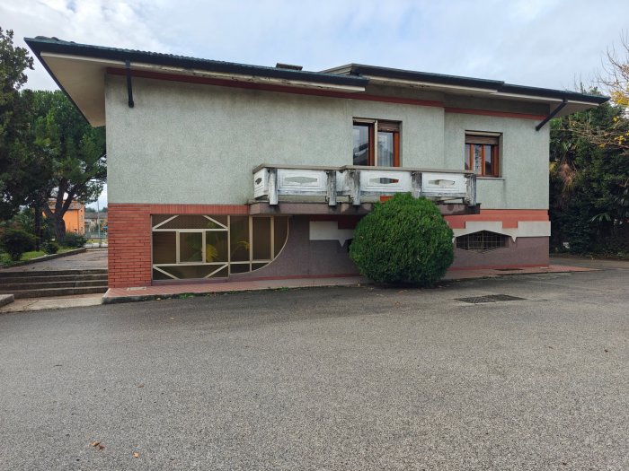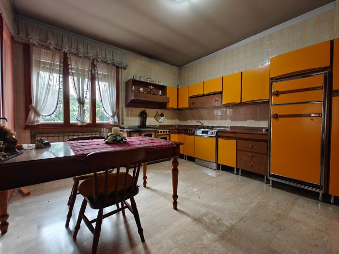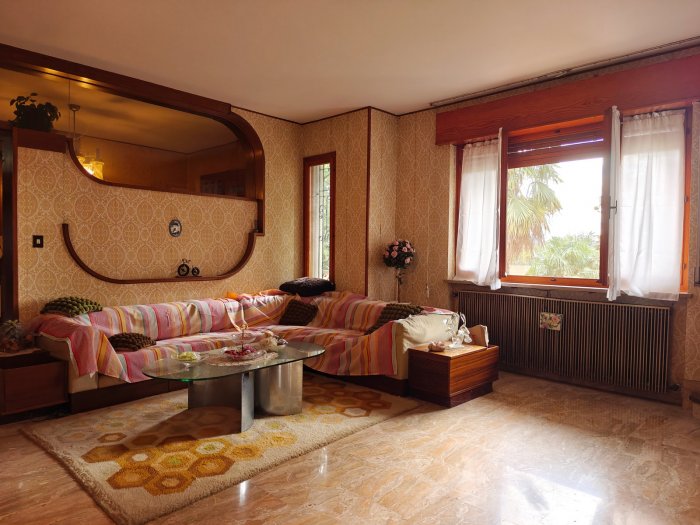 Cargnacco, via Buttrio. L'elegante villa singola, realizzata nel 1971, consta di un abitazione disposta su piano unico (160 mq) al piano rialzato con locali di servizio (180 mq) al piano seminterrato ed è circondata perimetralmente da un ampio giardino privato (ca. 1250 mq). La superficie abitativa al piano rialzato risulta così organizzata: ingresso, atrio, ampio soggiorno-pranzo con caminetto e accesso alla terrazza, cucina separata abitabile con terrazza, studio, disimpegno notte, 2 camere matrimoniali, una camera doppia, un ampio bagno finestrato con vasca. I locali al piano semi-interrato sono così ripartiti: garage 30 mq, ripostiglio, bagno-lavanderia, centrale termica, cantina, splendida taverna arredata, locale ad uso ufficio, portico coperto (20 mq). Le finiture, pur datate, conservano pregio e fascino: pavimenti in marmo, dettagli con mattone e/o klinker a vista, boiserie realizzate su misura da esperte maestranze artigiane. L'edificio, pur abitabile da subito, necessita di alcuni interventi di straordinaria manutenzione, diretti a migliorare il comfort e la prestazione energetica: revisione del tetto (guaina e alcune porzione del manto di copertura), impianto elettrico, ecc.. Gli spazi generosi, gli ambienti luminosi, il fascino di certi dettagli di modernariato edilizio, uniti alla presenza di un giardino piantumato con essenze arboree di pregio, rendono la villa meritevole di un intervento di valorizzazione. Posizione strategica a breve distanza dal centro città e a pochi minuti dal casello autostradale. Interessante opportunità!