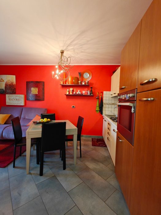 In curata e recente palazzina, accogliente e confortevole mini-appartamento (47 mq) arredato, sito al piano primo (senza ascensore): ingresso, atrio-disimpegno, soggiorno-cucina con terrazza, camera matrimoniale, bagno finestrato con box doccia. Al piano terra comodo garage (17,5 mq) con portone basculante elettrico e annesso ripostiglio con andito lavanderia. Finiture curate, impeccabili condizioni generali. Termoautonomo, climatizzato (climatizzatore Mitsubishi con due split). L'abitazione viene venduta con arredo quasi completo. Interessante opportunità.